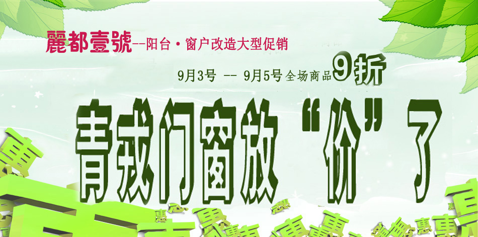 麗都壹號,高品質生活的典范。小區交通便利、購物均方便,風景優美。是理想的居住小區,可是原有的陽臺窗設計不合理浪費空間,我公司已經幫助眾多業主成功的改造陽臺窗,擴大了室內的使用面積。為回饋老客戶和應廣大業主要求我公司我公司定于:9月3、4、5日現場舉行大型團購活動。